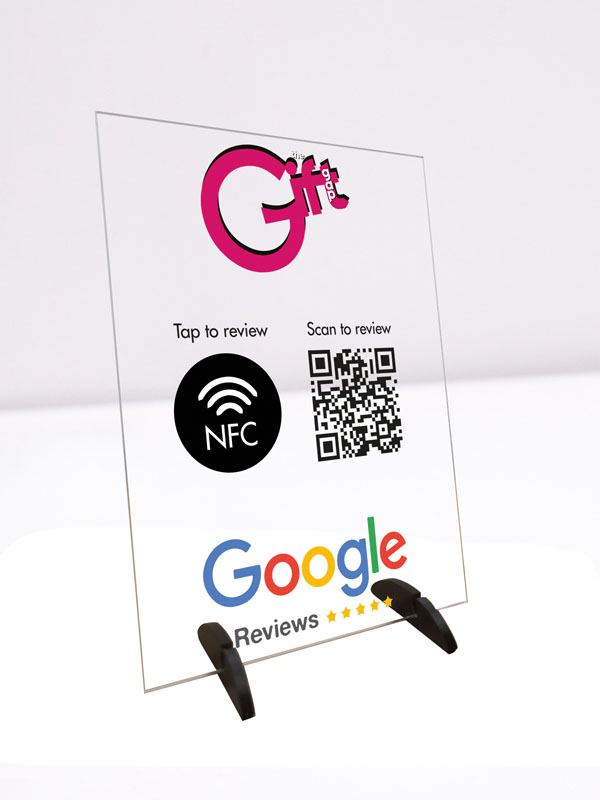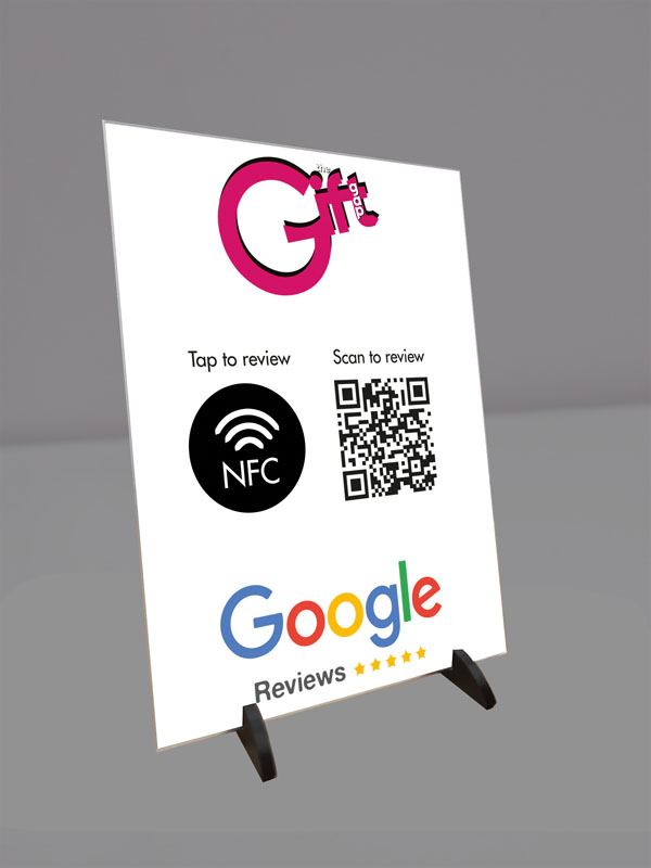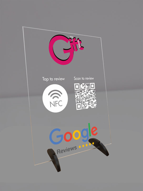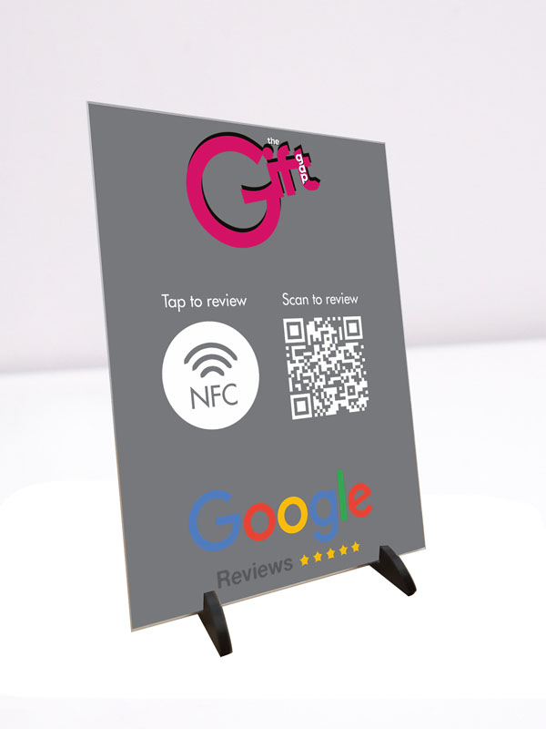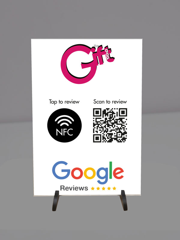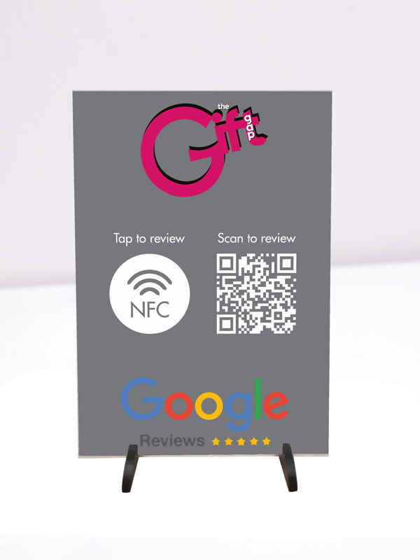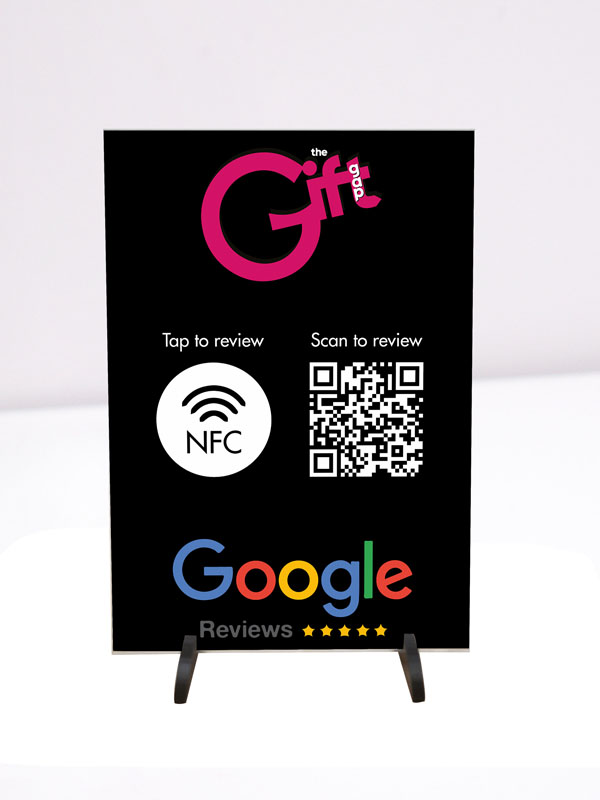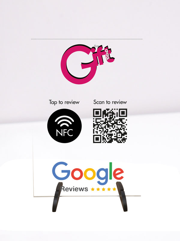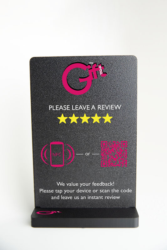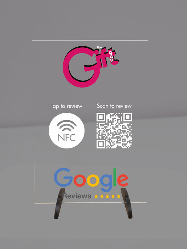 The Gift Gap?s NFC Google Review Stand is a sleek, modern display designed to effortlessly collect customer reviews. Featuring NFC technology, it allows users to leave a Google review with a simple tap. Ideal for businesses, it enhances credibility and boosts online presence with minimal effort. Stylish, convenient, and highly effective.